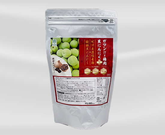 紀州産青梅1kgから僅か20g程度しか作れない濃縮した梅肉エキスにパワーの源、熟成醗酵させた国産醗酵黒にんにくを配合した健康食品です。