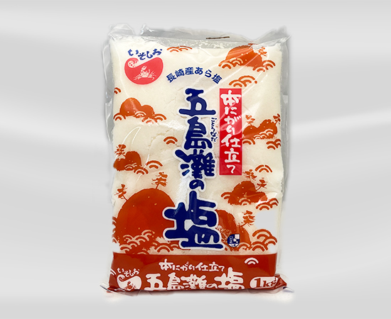 五島灘の清浄な海水を使用し、海の恵みでる「にがり」を程よく含んだまろやかで深みのある味わいが特徴。おにぎり、塩焼き、漬物、煮物など様々なお料理にお使いいただけます。