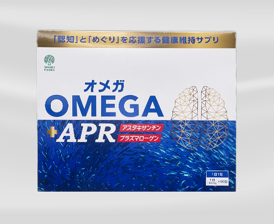 「認知」と「めぐり」を応援する健康維持サプリメント動脈硬化の予防に良いと言われる青魚などから摂取するオメガ脂肪酸(DHA・EPA・DHA)中心にコレステロールの酸化を抑制する抗酸化作用のあるアスタキサンチンとさらに言語記憶力や認知機能速度に関わる成分プラズマローゲンを配合してます。